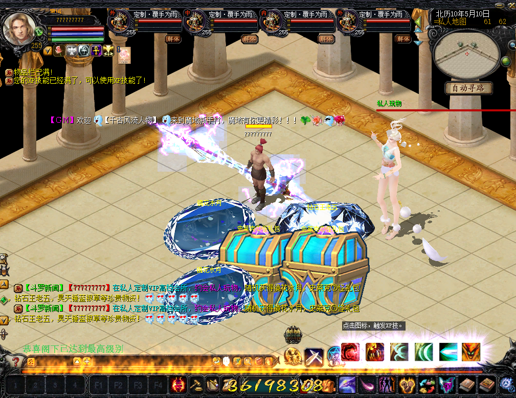 赞助10元:魔魂+255战魂+9全属性(地水火风+18)装备+(地水火风+18)顶级会员外套2件+成神令牌+送10万高级刷星水